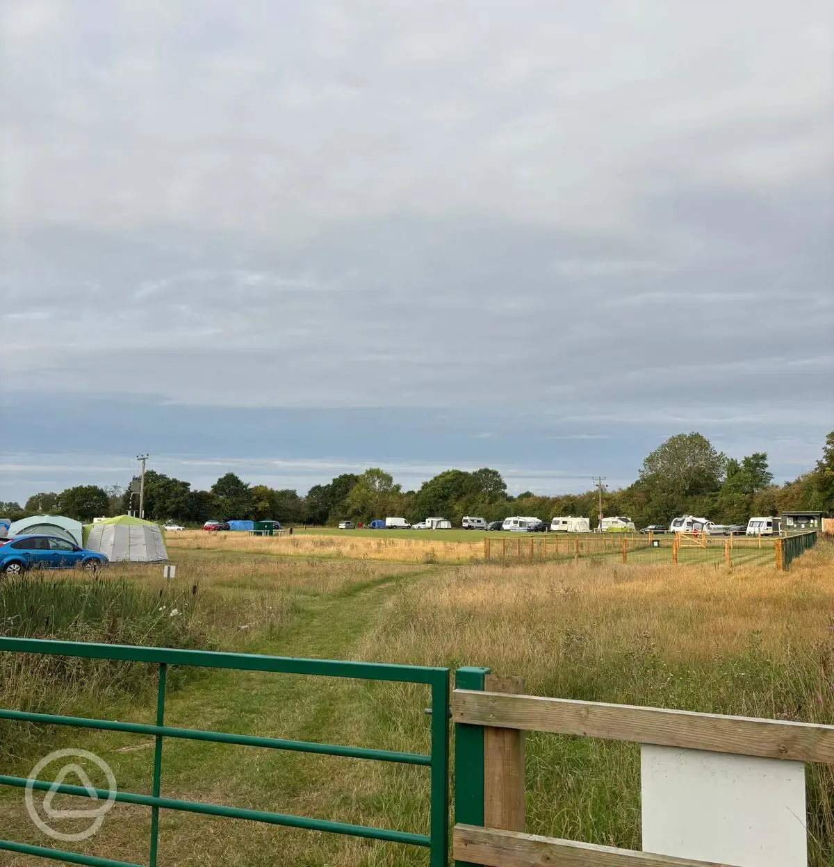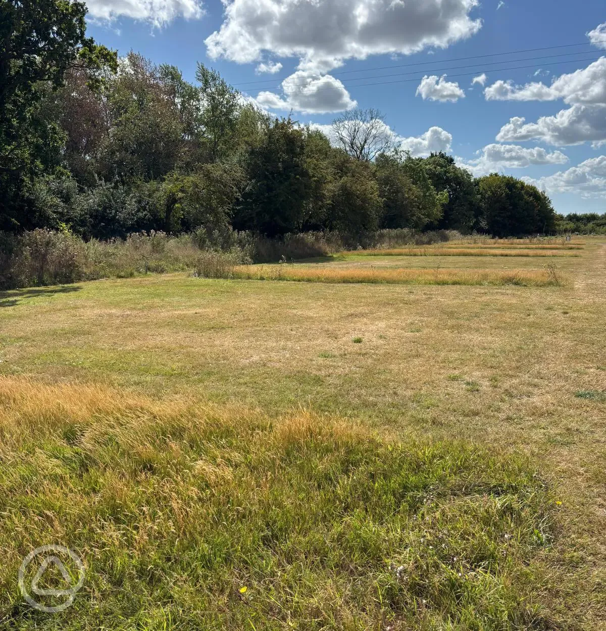 Spacious grass 14.5m x 14.5m pitches suitable for tents and small VW campervans up to 5m x 2m.