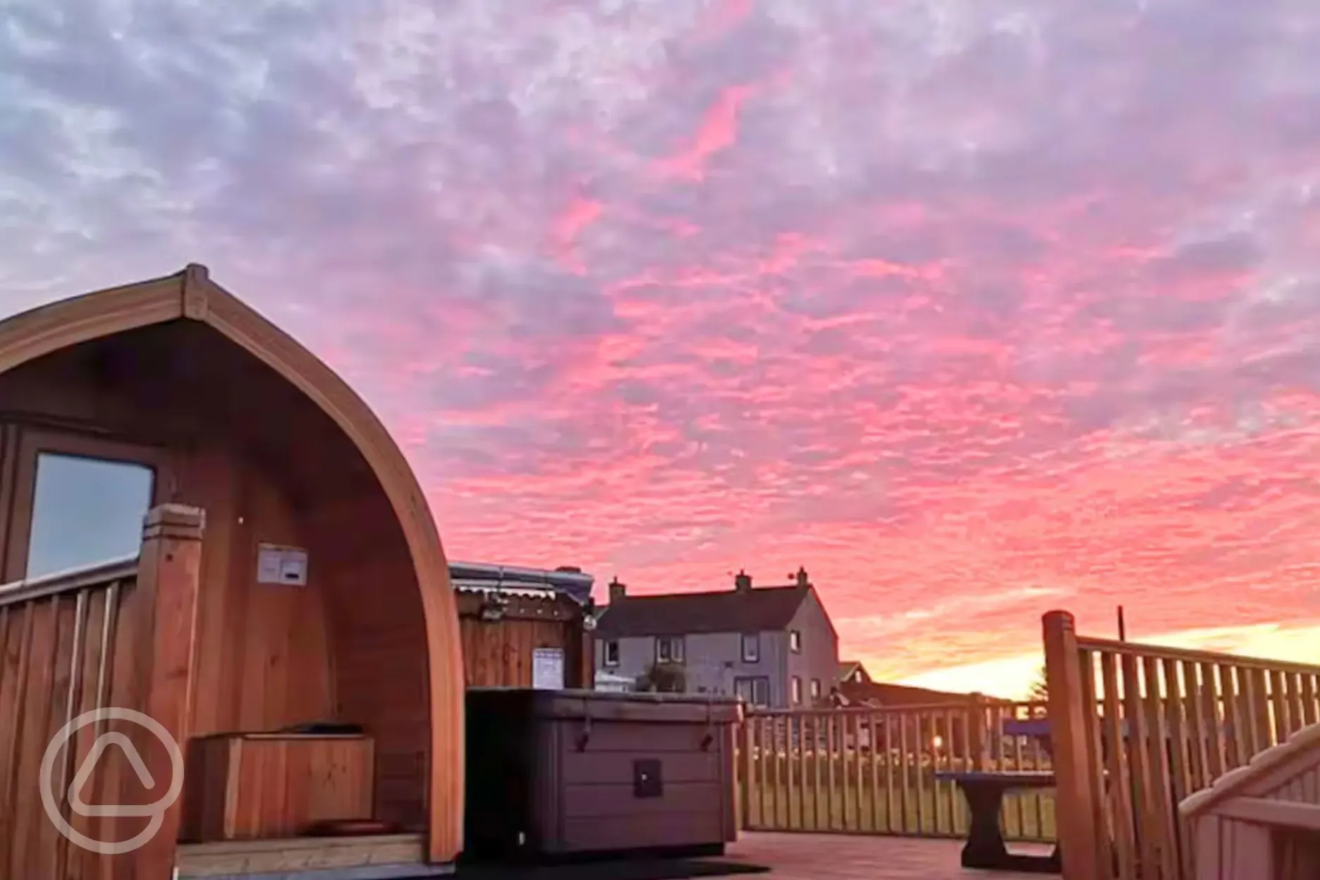 Cosy ensuite glamping pods with hot tubs for couples. Set on the Solway Coast, right by Hadrian's Wall.