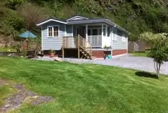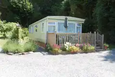 A luxury lodge sleeping four, with a double bedroom with ensuite, and a twin bedroom with family bathroom. The kitchen and lounge are furnished with all mod cons, and outside there is a decked balcony with furniture and BBQ overlooking the grounds.