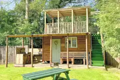 Adult only lodge with a double bed, indoor furnishings, an outdoor camper's kitchen, BBQ and fire pit. Please bring your own bedding and towels. Shared facilities nearby.