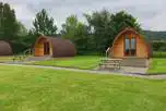 Deluxe glamping pods with double bed, double sofa bed and a single bunk with bedding provided. Inside is underfloor heating, a large kitchenette, a dining area, as well as a shower room with a toilet. Outside is a decked area and picnic table. No pets.