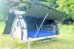 A Landpod with a double futon and two z-beds, a BBQ and a fire pit. Shared facilities are available nearby, and there is space to park a car alongside. Please bring all camping equipment, minus the tent.