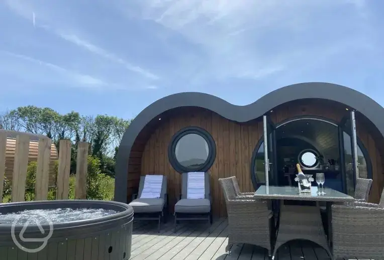 Luxury, ensuite pods with hot tubs on a 320 acre countryside estate. Next to Missing Link's Brewery Tap Room!