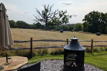 Ensuite glamping pods for four with private chimineas, outdoor seating and countryside views