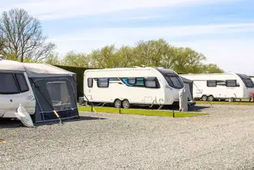 Large hardstanding super pitches with electric, water tap and drainage for caravans.