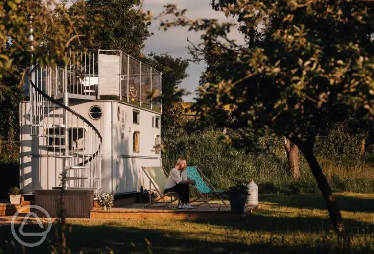 Perfectly located in the heart of the picturesque Severn Vale, surrounded by The Cotswolds, The Glamping Orchard gets you back to nature but not back to basics. Longney is just five miles from historic Gloucester and a lovely short walk from the River Severn. Combining the idyllic peace and quiet of orchards and beautiful countryside with close proximity to great pubs, market towns and delightful villages.