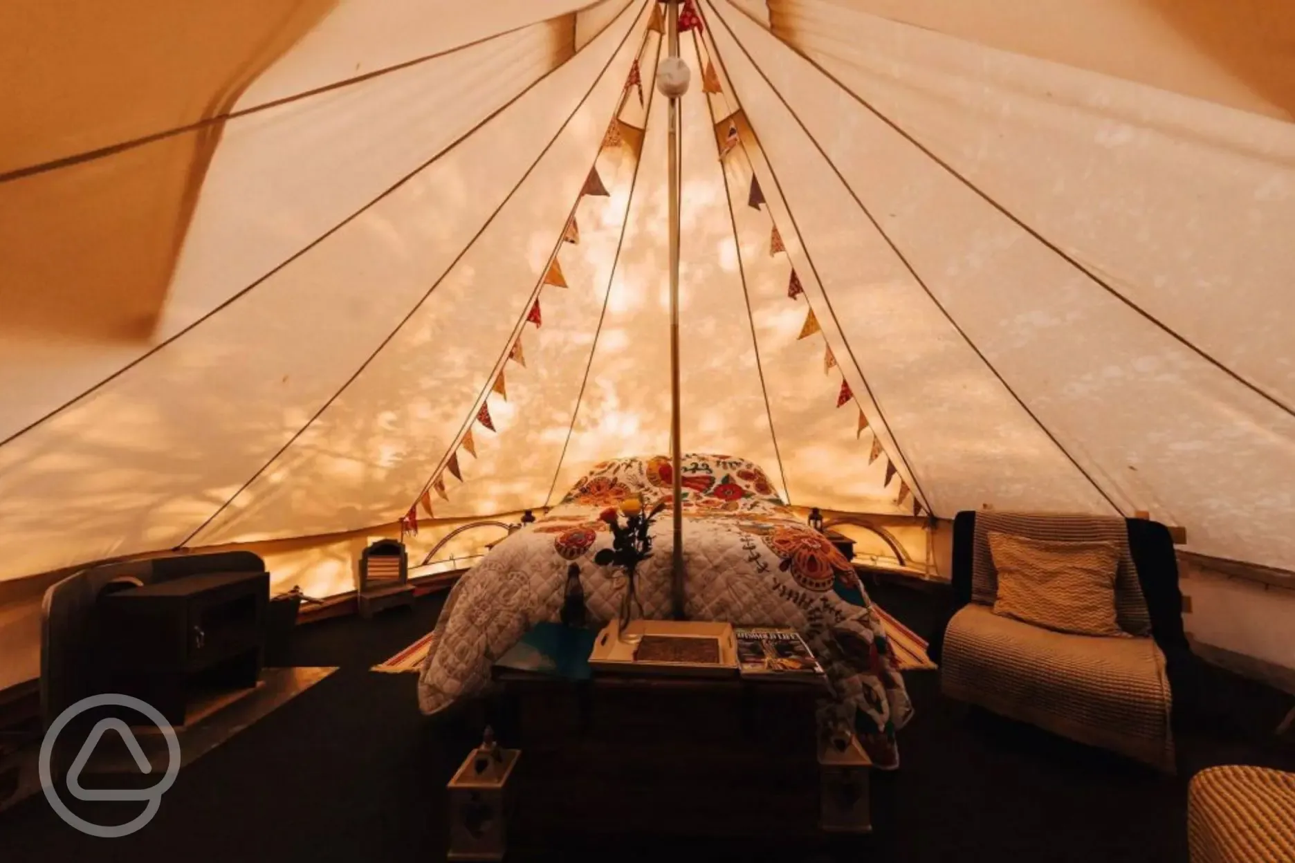 Off-grid camping and fully furnished bell tents. Set in the Cotswolds AONB, ten minutes from Cirencester.
