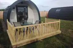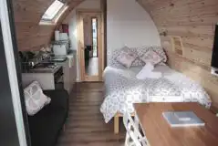 Spacious mega pod including a double bed, gas hob, electric oven, fridge, kettle and toaster. Linen and towels included. Sorry, no pets. Please note, the pod is on a different site from the campsite.