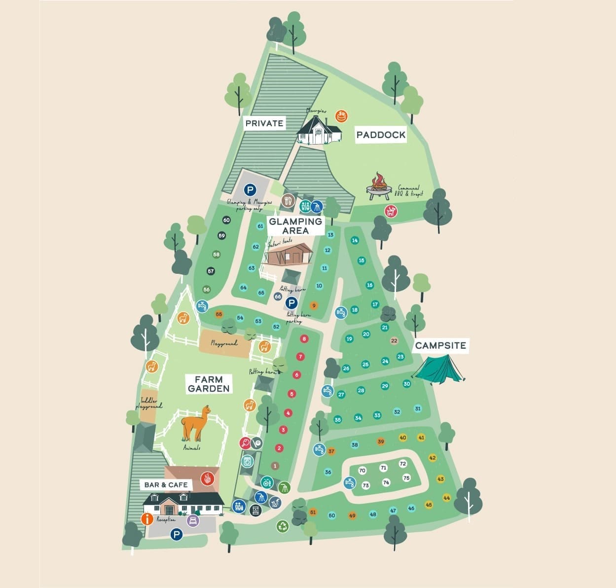 There are 72 accommodation options on-site