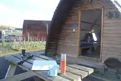 Heated Wigwam pod to sleep up to five people. Located centrally with a small fridge, microwave, toaster, kettle and outdoor picnic table. Private hot tub, shared facilities building nearby.