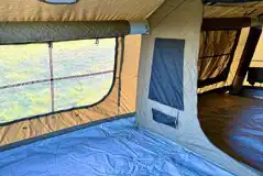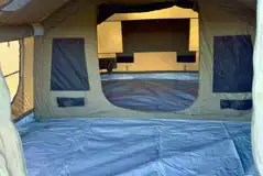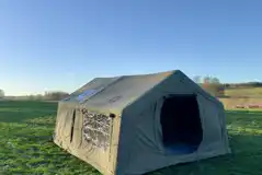 Ready tent to hire, with flexible living and sleeping areas, it's perfect for families or groups who want extra space. The tent is carpeted but please bring your own camping gear. Shared facilities nearby.