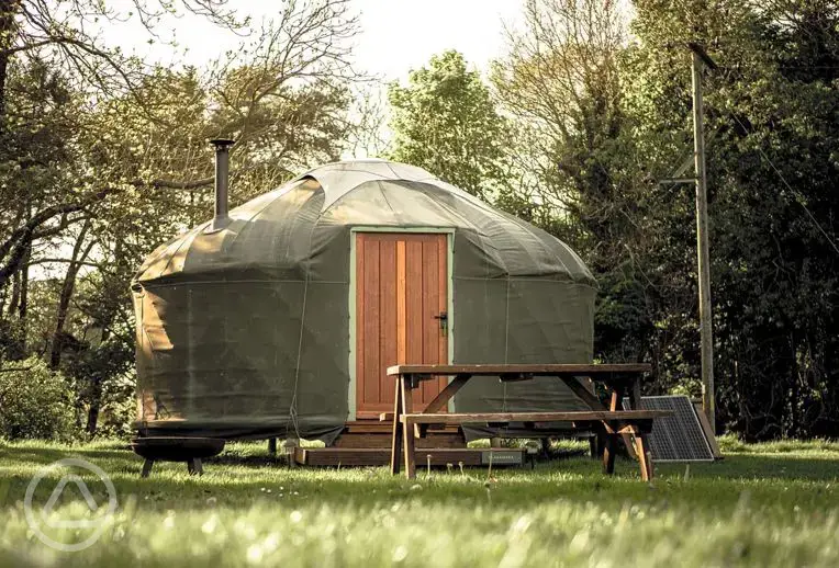 Stylish yurts sleeping 2-5 which include a skylight, double sofa bed and two single day beds - plus space for a fifth on a mattress. Bedding is provided and a kitchen area with hob and grill. There is a wood burner and solar power, plus fairy lights.