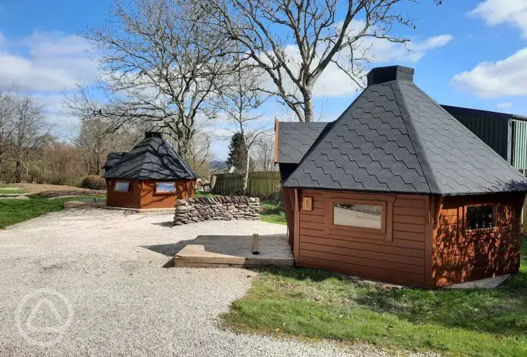A cosy alternative to a tent, these camping cabins include a bench and floor space to take blow up beds, plus a heater. One cabin is dog friendly. Limited electric inside for charging phones only and not powering appliances.