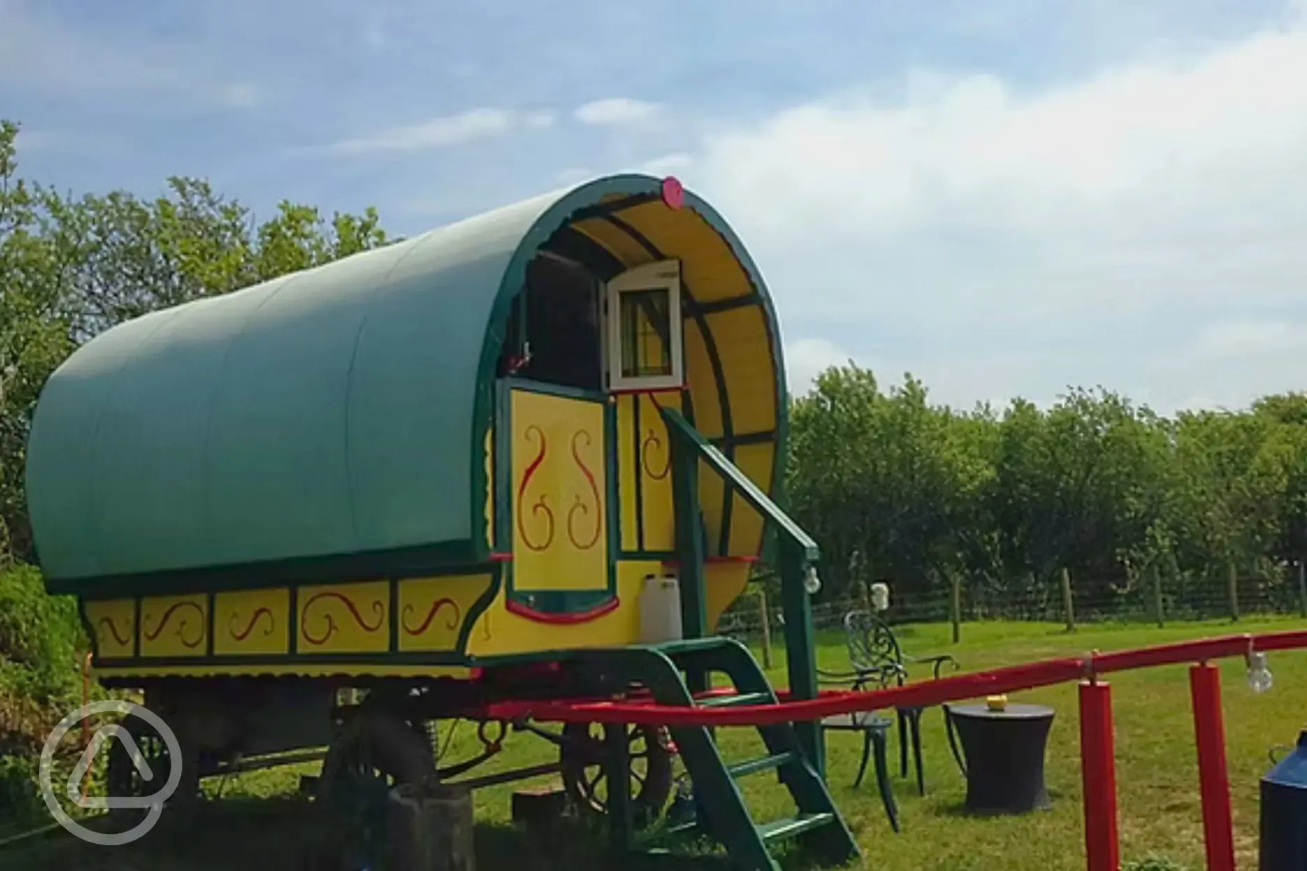 A romantic gypsy wagon for two, with double bed and breakfast delivered to your door.