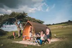 Fully insulated and double glazed wooden camping pods, sleeping up to 4 with a double and two single beds. Outside is a picnic bench, and space for a BBQ.