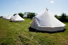 Unfurnished bell tents for up to six. Bring everything else you would for camping except the tent. Shared facilities nearby. Dogs welcome.