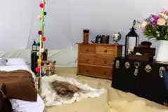 Two luxury and stylish 5m bell tents (sleeping up to two adults and two children) and a spacious 6m bell tent. Each are fully furnished and include fresh water and fire basket.