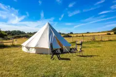 A 5m unfurnished bell tent with a rug, outdoor table and fairy lights. Please bring everything you usually would for camping. Shared facilities are nearby. Sorry, no dogs allowed.