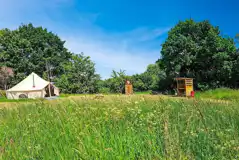 Driftways Glamping and Meadow Camping site is based at Moat Farm, in the heart of the East Anglian countryside and is surrounded by farmland. Even though it feels like you're in the middle of nowhere, the site provides easy access to a huge range of attractions and amenities across the local area. There are 13 spacious pitches, five individual bell tents for glamping and eight oversize camping areas mowed into the meadow grass. All pitches have their own clean compost toilet, campfire area, picnic bench and cooking area. Each bell tent also has a fully equipped kitchenette and own device charging facilities. Shared hot gas and solar-powered showers are available nearby for all guests to use. Bedding is not included but is available for hire from the site. Choose the extra luxury of a deluxe bell tent and you'll be treated to your own toasty wood burner! Site owners Vanessa and Andrew aim to provide guests with comfort in nature with an off-grid glamping and camping experience and therefore the site aims to be as eco as possible. Recycling bins are provided but guests are politely asked to keep glass usage to a minimum. The site is across the lane from the team's smallholding and divided into camping and glamping areas. Driftways does not allow pets within glamping, except for guide dogs. Dogs are allowed to stay with camping guests for a small fee.