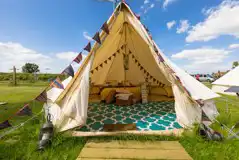 Stylish bell tents that include a bed, all bed linen, tables, floor matting, BBQ/campfire, deck chairs and electricity. Max occupancy of two adults per tent and a car parking bay is included. Shared facilities nearby.