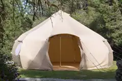 Luna Bell tents with space for four, with bedding provided and the option to add airbeds. Inside they are furnished with tables, rugs and crockery. Outside you will find decking area with picnic seating, BBQ, fire pit and campfire area.