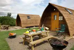 Wigwam pods equipped with free WiFi, lighting, heating and electric sockets. There are eight standard pods with communal kitchen and dining area and ten pods with ensuite and a mini kitchen. Guests must provide bedding and towels.