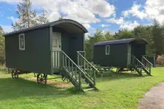Shepherd's hut with a double bed, table and chairs, microwave, toaster, kettle and heater. Please bring your own bedding and cooking equipment. Shared facilities nearby.