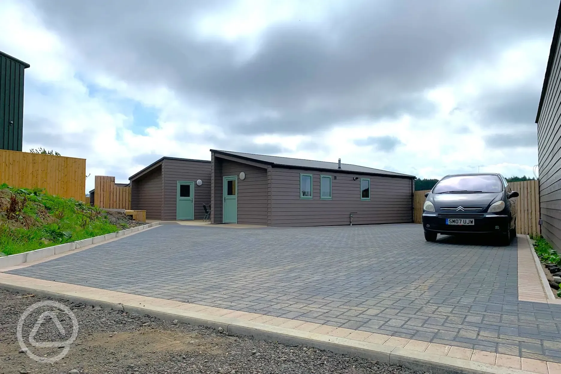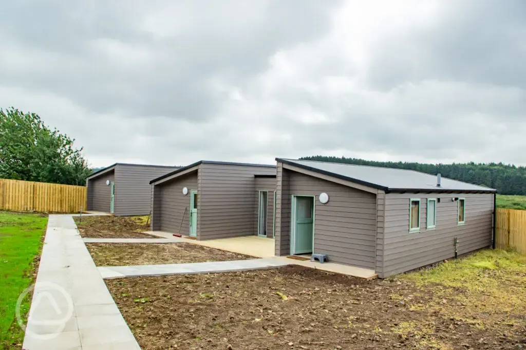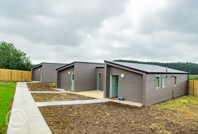 Double and single cabins built for accessibility with a wet room, kitchen area, living area, beds and a bunk room. Pets welcome with prior approval. Some offer two cabins within a linking area which can be rented together or separately.