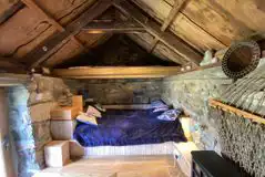 A restored cattle byre with a double bed, single bunk and optional hammock. Inside is a kitchen with an induction hob, small fridge, toaster, coffee machine, sink and heating. Shared facilities nearby.