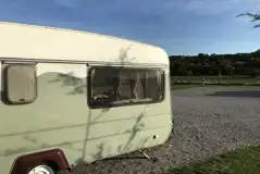 Stay in a 1976 Churchill Premier caravan, refurbished with modern touches. It sleeps two people with one double bed, electric heating, storage, a toilet and kitchen items like a kettle, toaster and microwave,