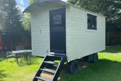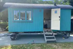 Ensuite shepherd's hut with a double bed, kitchenette and private bathroom facilities.