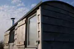 The Orchard hut Sleeps up to three with a small double bed and futon for the floor, gas rings, crockery, cutlery and electric sockets. There is also an outside seating area with a firepit.