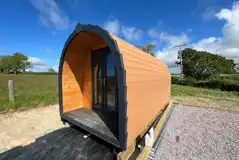 Cosy camping pod, finished with a double bed and a double sofa futon. Shared facilities nearby.