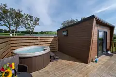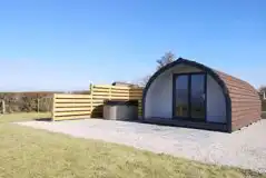 Luxury self contained pods set on a family run farm and equipped with king sized bed (bed linen provided), large L shaped sofa, plus an ensuite as well as a fully equipped kitchen, Smart TV, WiFi, and outside hot tub and BBQ area.