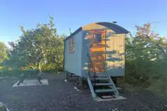 Cosy shepherd's hut equipped with a double bed, a kettle, a wood burning stove and power sockets. There is also an outside area with a picnic table and BBQ/fire pit. Shared toilet facilities nearby.