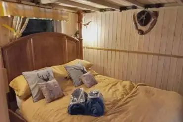A cosy hut sleeping two with ensuite facilities and fully furnished interior.