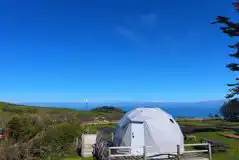 This award winning holiday park enjoys sea views over the Bristol Channel that are nothing short of spectacular! Nestled in the picturesque Exmoor National Park, the site is ideal for a getaway and also a haven for furry friends, being a very dog friendly destination. For campers, there are a range of options that cater to every preference. Guests can enjoy a traditional camping experience on non electric or electric grass and hardstanding pitches, each named with a touch of charm - Valley View, Bay View, Beggar's Field, Rabbit Field, or The View. And don't worry about size, all pitches generously allow up to six. Alternatively, there are glamping options too. The two camping pods each sleep up to two people in a double bed with all linen provided, however please bring your own towels and cooking facilities. Inside you'll also have a sofa, small dining table, and bedside tables and outside there is picnic bench seating with incredible views. There are two geodomes onsite, one of which is dog friendly. Both include a double bed with bedding provided, a spacious living area, electricity, gas, and heating, plus a kettle and fridge. Outside, enjoy your own patio with outdoor furniture. Please bring your own towels and cooking equipment. The site also has two safari tents, each with a private hot tub and picturesque views of the valley and sea. Whether you choose to relax on-site, explore the nearby beaches, or dive into the wonders of North Devon, boredom is simply not an option! Furry companions are welcome on all camping and touring pitches, along with the glamping units. There are even designated areas for dogs to roam off the lead and a convenient dog shower. The site has also picked up awards from Visit Devon and Visit South West. Campfires and fire pits are not permitted, BBQs must be raised off the ground. Gazebos and event shelters are also not allowed due to the exposed location. The site also offers a range of static caravans and holiday lodges onsite.
