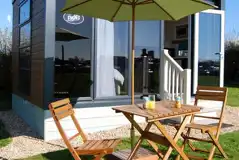Sleeping two with a large double bed and a flat screen TV. These feature soundproofing, a dining table and outdoor furniture outside.