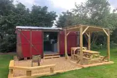 This is a small, friendly site surrounded by peaceful countryside with a fantastic communal area. The quaint market town of Long Sutton is also just a five minute drive away for those looking to explore the local area! There are 16 grass pitches available, all with an optional 13 amp electric hook-up. They are a great place to set up camp, whether you have a tent, trailer-tent, caravan or motorhome. Alternatively, if you don't want to bring your tent, you can opt to stay in either a spacious safari bell tent or in one of the luxury railway wagons. These are all set up for four people with a double bed and two single beds, or bunk beds, in the railway wagons. The two safari bell tents also come with an electric heater, fairy lights, a hanging rail, a chest of drawers, a kettle and mugs and a covered outdoor picnic bench and prep area for al fresco dining. The two railway wagons have some added extras, including crockery, cutlery, a fire pit and an outdoor sheltered picnic table. If staying in any of the glamping units, you will need to bring bedding and towels with you, as these are not supplied. There is a communal lounge area with a pool table, sofas, a piano, communal fridges and plenty of games and books to borrow. A small on-site shop offers additional treats, essentials and gifts, and a gazebo-covered outdoor communal area provides a great place to sit and eat with friends. There are also a herd of guinea pigs for you to meet, feed and pet twice a day, every day, at no extra charge. As well as a small children's area, a tree den and a large fenced grassed area, which provides plenty of space for children to keep themselves occupied! Dogs are very welcome on site, but must be kept on leads at all times.