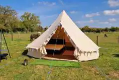 Small, family friendly site set on a farm in Horstead village, 20 minutes from Norwich and only 30 minutes from the coast. This is a great spot for anyone looking to escape everyday life. There are ten grass pitches without electric hook up suitable for tent campers, as well as an additional five non electric grass pitches for tourers with campervans, caravans and motorhomes. Stay in one of the three bell tents, which sleep up to two people on a double bed. Inside, you'll also have a seating area, whilst outside is a fire pit. A lovely choice for those wanting to avoid hammering in their own tent pegs. Situated a ten minute walk from the banks of the River Bure in the heart of the Norfolk Broads, this is a lovely choice for relaxing and taking part in some kayaking or paddleboarding. This site allows campfires, so you'll be able to achieve that authentic camping vibe. Dogs are welcome onsite.
