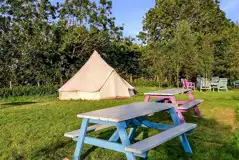Camping, touring, cabins and the barn are available all year round. Bell tents are available from Easter until mid September. Pitches from £32/night for 2 people.