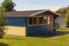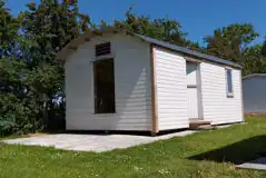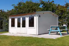 The smaller cabin has a double bed, bunk beds and seating inside. Please bring your own bedding. Outside is a patio with picnic bench seating. Sorry, no pets.