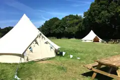 Bell tents are open May 15th to September 7th. Camping is open May 1st to September 13th. Stay from £90/night for 2 people (2-night minimum).