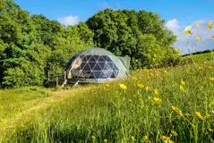 Small, eco friendly site with spacious camping pitches, pods and luxury domes