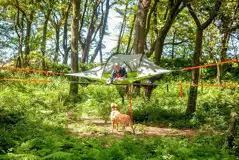 Two pre-erected woodland Tentsile tree tents together with cooking equipment, campers kitchen, fire pit, compost loo and picnic table. Bedding not provided.