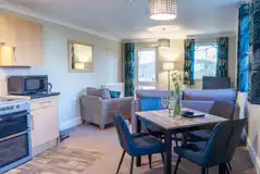 Located in the beautiful valley of the River Lune and set within nine acres of lovely landscape, Woodclose is a quiet and serene park offering a unique holiday base for those looking to explore the national parks and Areas of Outstanding Natural Beauty. Plus, the market town of Kirkby Lonsdale is just a ten minute walk. Location is one of the many strengths of Woodclose Park and you will find plenty to see and do all within easy travelling distance of the park. Woodclose Park offers a range of accommodation. For tourers, the spacious area is ideally spaced for caravans and motorhomes with or without awnings, conveniently located near the amenities. All pitches are supplied with electric, water, grey waste drain and TV hook up points. There is a selection of glamping pods, including a super deluxe version. Some pods welcome dogs and so there's no need to leave anyone behind. While most pods accommodate up to two adults and two children, Ruskin View offers enough room for two adults and three children. The Hive Cabins are a welcome addition to the site and offer guests looking for something a little bit different. 'Treetops' is a dog-friendly self-catering apartment. With a double bedroom and sofa bed in the lounge, the apartment can accommodate up to four guests. Inside, you'll find an open plan living area and fully equipped kitchen.