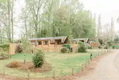 Sleeps two. Each Meadows 2 cabin includes a king-size bed, well-equipped kitchenette with hob, mini-oven and mini-fridge, shower room, TV with DVD player, WiFi, private patio with furniture and hot tub. Beds are made on arrival, and towels are provided.