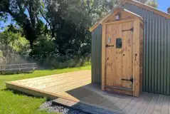 This cosy cabin is ideal for stays all year round, with a double bed, two single beds, USB ports, running water, kettle, crockery and a cooking stove. Your own picnic table and decking are outside. Bedding is included.