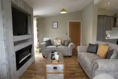 Luxury three bedroom lodge. Sleeps up to six with one double with ensuite shower, one twin and one with bunk beds. As well as open plan lounge/diner with kitchen area and main bathroom. Outside, a patio with garden furniture and outdoor hot tub.