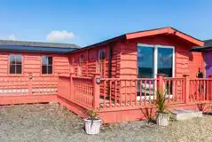Cosy en suite cabin with double bed, bedding and towels provided. Lounge area with TV, and fully equipped kitchen. Decked area outside. Sorry, no pets.